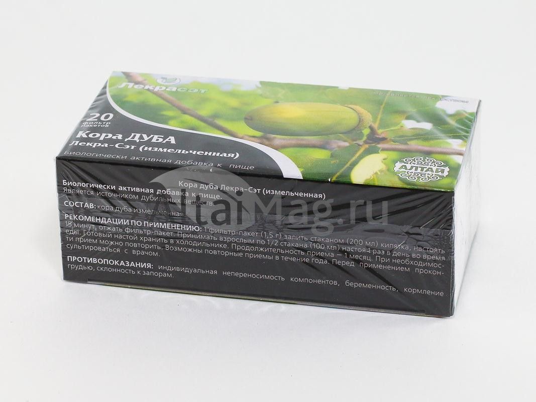 - Купите Дуб, кора, 20 пак (Лекра-сэт) в Ульяновске по доступной цене 88 ₽ с доставкой на дом или заберите Ваш заказ в Ульяновске из ближайшего пункта выдачи, сделав заказ на AltaiMag.ru.